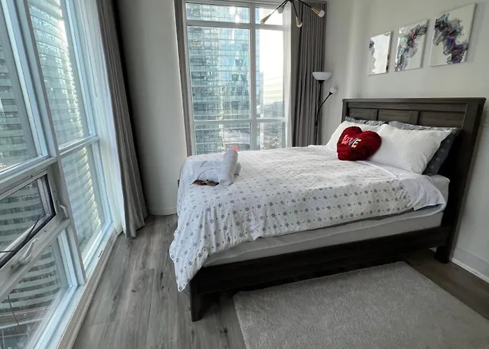 Prestigious 2-Bdrm Condo - Across From Scotiabank Arena si trova a una distanza di 650 metri dalla stazione della metropolitana Union, a una distanza moderata dal Toronto Eaton Centre. Gli ospiti possono raggiungere facilmente la Torre CN, che è a soli 8 minuti a piedi. Gli ospiti saranno vicini al Parco dell'isola di Toronto, a 2 km.